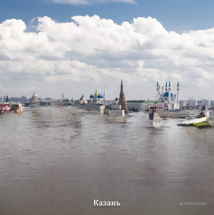 Фото городов прогнали через нейронные сети, чтобы выяснить как бы выглядели города в случае глобального наводнения.