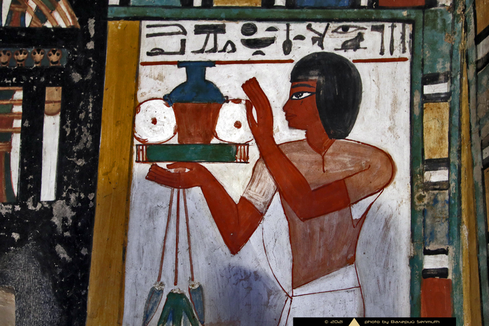 Многочисленные гробницы Древнего Египта устроены так, что одна часть предназначалась для посещения гробницы родственниками и паломниками, для поклонения усопшему и подношений, для отправления религиозных ритуалов жрецами. Стены молельни были расписаны деяниями умершего, актуальными на тот момент сценами.