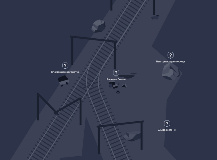 Есть как сюжетные локации, так и локации в которые можно ходить бесконечное кол-во раз, полутать расходники для крафта. Так например всегда доступна шахта, со слегка-рандомной картой и генерируемыми метками.