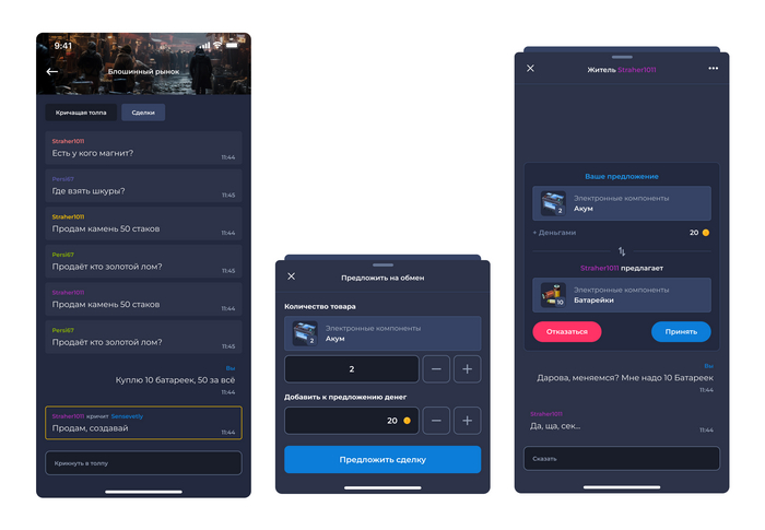 Если ещё не утомились читать, расскажу про третью, это Блошинный рынок. По факту локальный чат, где можно крикнуть что продаёшь, или чего покупаешь, и поторговать напрямую. Не очень эффективно, но в меру весело.