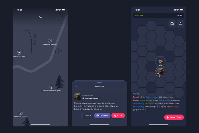 Про битвы тоже не забыли. Как то уже обсуждали. Всё думали, как их лучше сделать в нашем формате игры в которой нет никакой анимации и графония. И вспомнили про старые добрые браузерки, и решили, что раз уж мы тут и так натолкали всё и сразу, то они то нам подойдут лучше всего. В любом случае драка, где нужно думать, а не просто тыкать, лучшая драка. Враги разные, как и эффекты, которые могут на вас повлиять. Болезни, раны, усталость — всё это будет мешать вам победить, так что придётся немного пошевелить мозгами. Мы хотим, чтобы каждая битва была в кайф и заставляла вас реально задумываться о своих действиях. Те кто помнит времена Апехи и БК должны пустить скупую слезу.