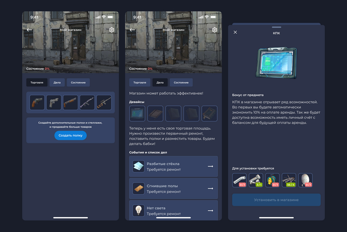 При этом игра строится таким образом, что если ты не хочешь исследовать мир, лутать локации и вообще драться с противниками, ты можешь этим не заниматься. Можно развивать крафт, улучшая жилище, и станки, или открыть магазин или аптеку и просто торговать с другими игроками, получая нужные предметы и продвигаясь по сюжету в обход рутины.