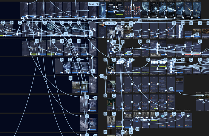 Часть предметов связаны с локациями, квестами и NPC персонажами. Это всё так же закручивается в ноушене в узелок. Локации связаны с персонажами, те с диалогами, диалоги с квестами, квесты с предметами. Сущий ад.