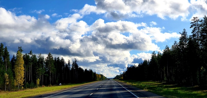 Трасса М8 и осенний пейзаж