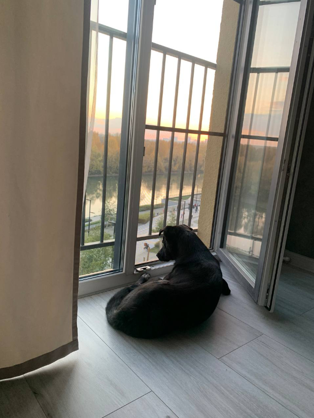 Забрал пёселя уличного месяц назад с улицы, как с первых дней начал залипать в окно, так до сих пор и залипает, теперь это любимое место.