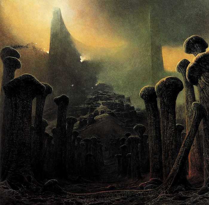 Бексиньский не считал свои полотна образцом мрачной безысходности и не стремился к статусу оккультной иконы от визуального искусства (хотя и активно изучал эзотерические учения), а, напротив, считал свое творчество вполне ироничным и даже оптимистичным. Художник полагал многие свои работы понятыми неправильно, призывая зрителей и критиков абстрагироваться от собственных подсознательных страхов и взглянуть на его творчество под иным углом – смерть есть лишь иная сторона жизни и, возможно, более «живая» … Как бы там ни было, польский ведьмак от живописи Бексиньский является культовой фигурой, оказавшей огромное влияние на концептуальный арт по всему миру. Наш любимец, великий и ужасный Ганс «Руди» Гигер, кстати, был большим поклонником Бексиньского и даже признавался, что знаменитый образ Чужого из одноименного кинофильма Ридли Скотта был, помимо прочего, вдохновлен творчеством польского мастера.