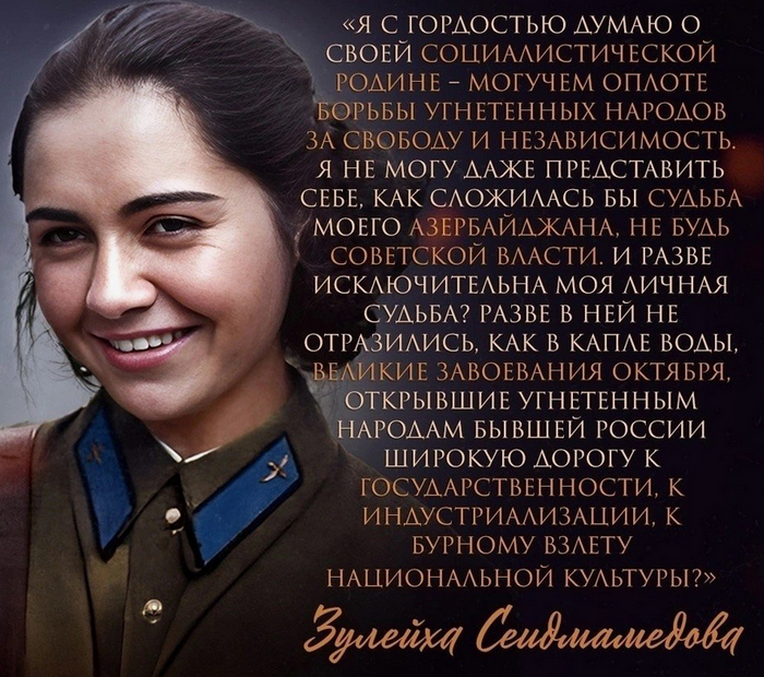 Зулейха Габибовна Сеидмамедова - капитан ВВС СССР. В годы Великой Отечественной войны служила в 586-м женском истребительном авиаполку. Зулейха родилась 22 марта 1919 года в Баку. Закончила Азербайджанский индустриальный институт и Бакинский аэроклуб. В 1938 году поступила в Военно-воздушную академию имени профессора Н.Е. Жуковского. В 1939 году избрана депутатом Московского совета.