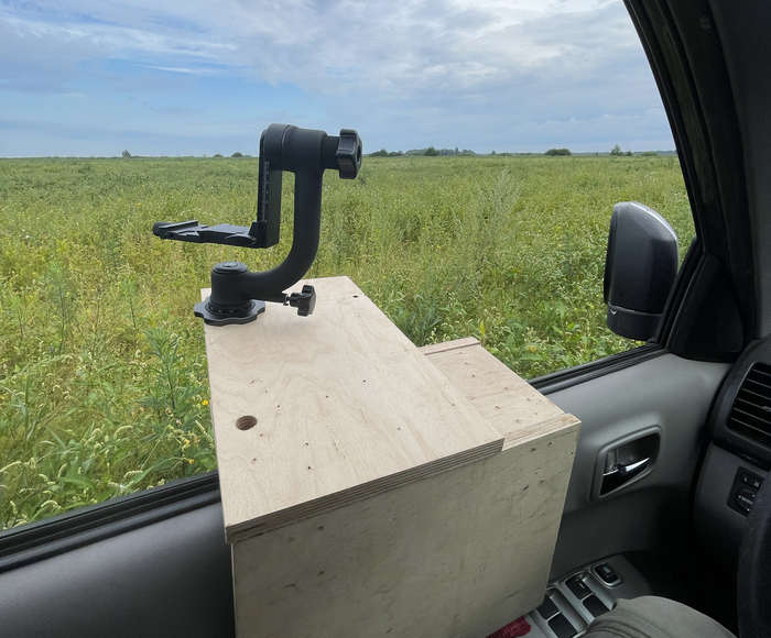 Получилось снять фото и видео этого момента благодаря самодельной приспособе - штативу на дверь автомобиля