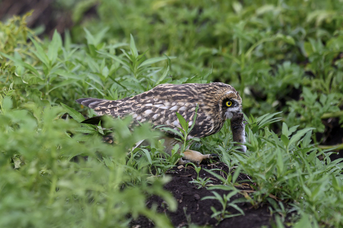 Два совенка болотной совы изучают мир :)