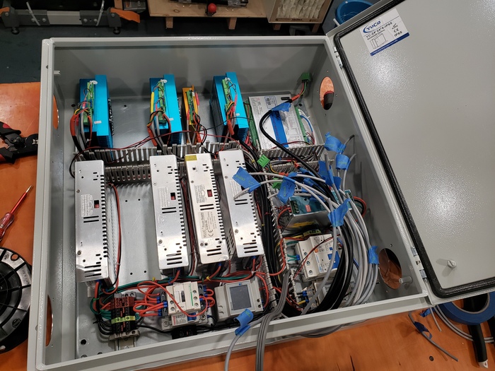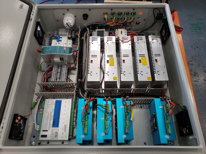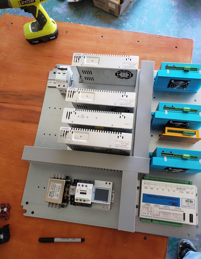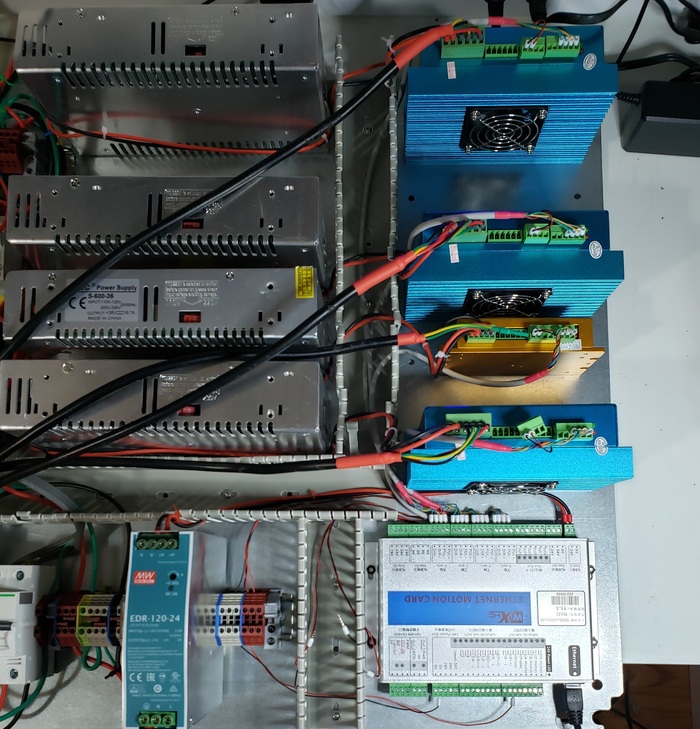 Вот как-то так чтоб было. Ко мне доехало ещё не всё что я хотел и кое-где я использовал то что было под рукой чтобы в качестве плейсхолдеров, чтобы понимать где сколько провода и вот это вот всё. В частности кое-какие автоматы, драйвер четвертой оси, релюшка с этой фотки, весь этот китайский мусор будет заменён на другой китайский мусор в дальнейшем, когда тот приедет.