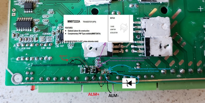 В процессе экспериментов по ошибке даю в аларм настоящие 24в без сопротивления и один контроллер сгорает, вернее сгорает его аларм выход. Это очень печально, особенно в контексте того что новый контроллер будет ехать ещё пару месяцев. Я не особенно специалист в радиоэлектронике, и богат только теми знаниями что были в школьной программе. В отчаянии иду на форумы, там тоже такие себе советы, не самые полезные.