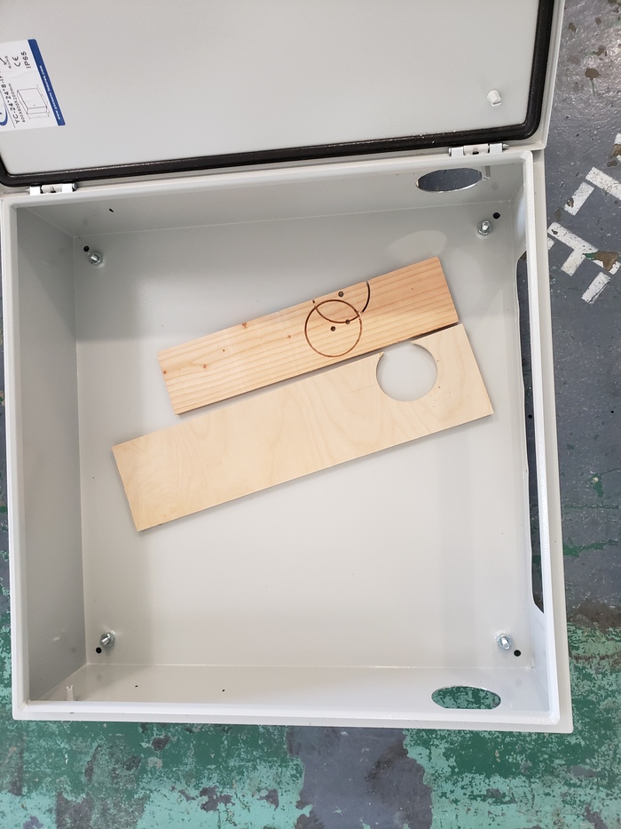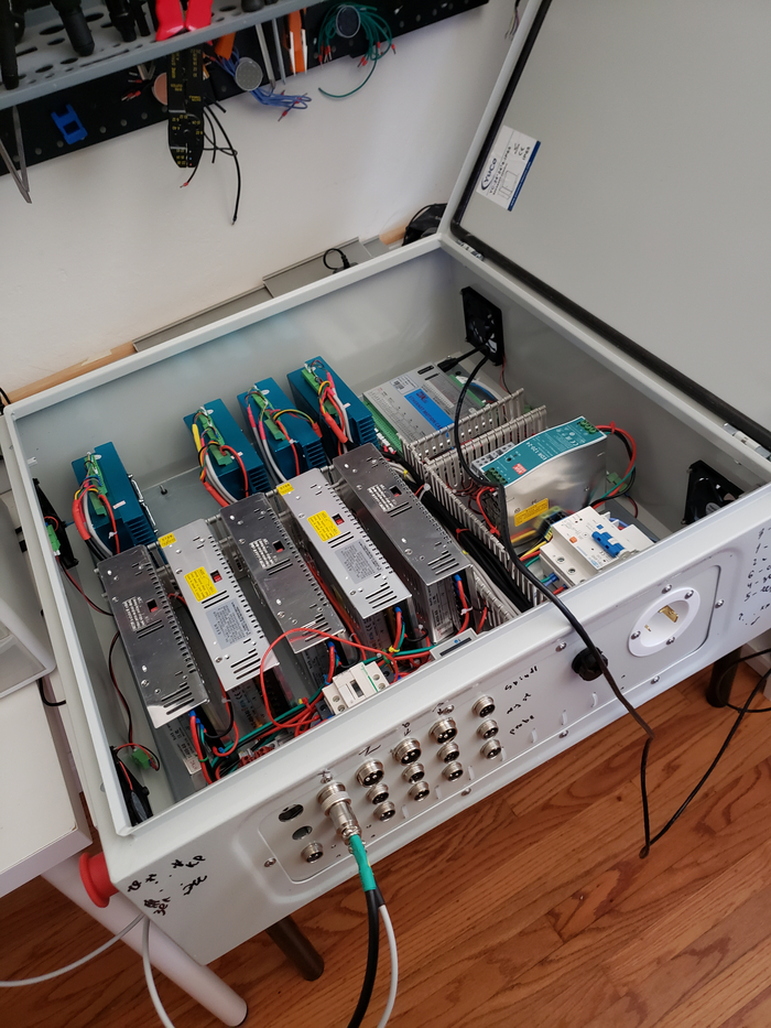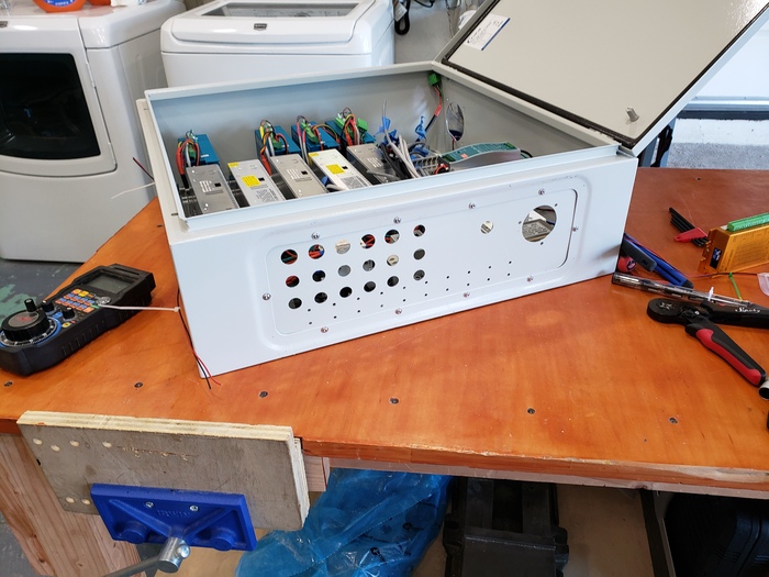 Это было вступление. Теперь имплементация собсна. Собирать я планировал это всё в корпусе NEMA1 но как-то так сложилось что корпуса NEMA1 все очень стрёмные и найти корпус с монтажной панелью нужного размера у меня не получилось. Была идея сделать самому но на момент покупки корпуса у меня тут случился небольшой апокалипсис и стоимость оцинкованого металлического листа листового металла выросла аж до 50$, при таких раскладах мне оказалось дешевле купить готовый корпус нема4 с монтажной панелью и с фальшпанелью для разъёмов, его продавали ещё по старым ценам тогда.