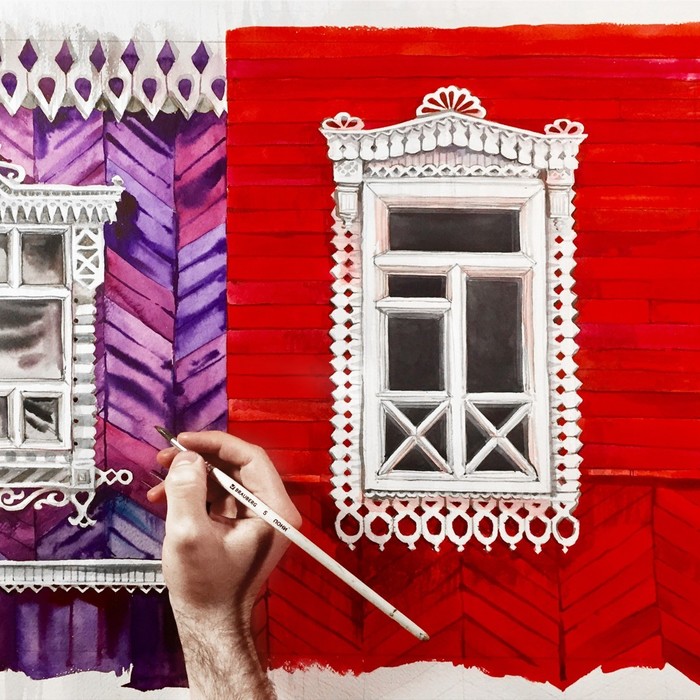 Порой зритель отчетливо видит, что есть фотография, а что акварель, но в некоторых местах эта граница совершенно не заметна.