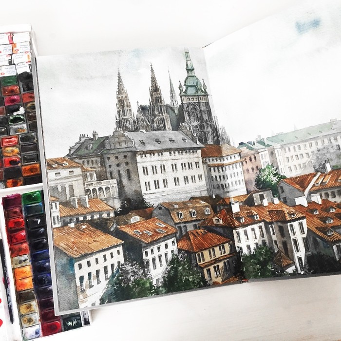 Это и был мой план, стереть границу между этими техниками. Самым сложным мне показалось подготовить акварели таким образом, что-бы по ним можно было печатать не только фотографии, но и сшить альбом в твердом переплете.