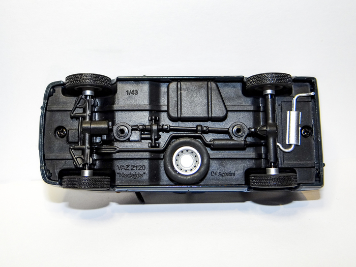 Проработка днища у всех саратовских ГАЗелей на достойном уровне. Передний и задний мосты, карданный вал, выхлопная система, нижняя часть двигателя, выполнены отдельными элементами. А в задней части расположено запасное колесо, которое крепится к донышку с помощью пластикового кронштейна.