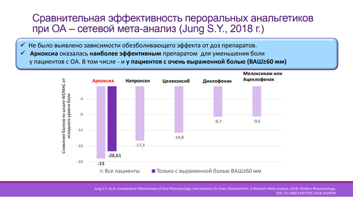 Эторикоксиб (он же - аркоксия) - прекрасный и эффективный препарат, наряду с целекоксибом - препарат выбора во многих случаях. Листайте дальше карусель, там ещё два слайда