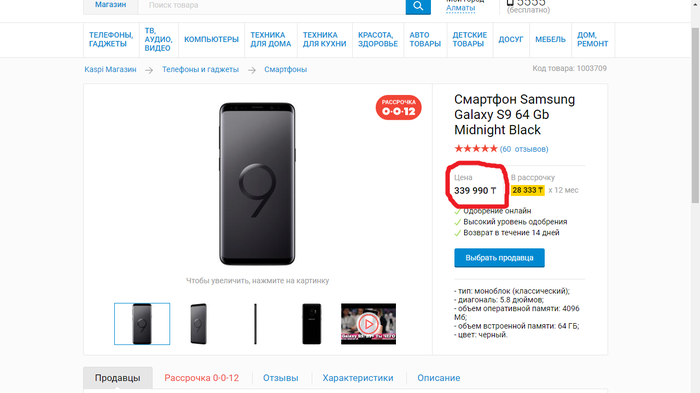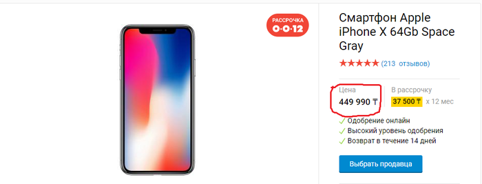 Приветствую, не думал я, что и до меня дойдет очередь запилить пост на моём любимом сайте. Но с сегодняшнего дня в Казахстане начинает действовать замечательная "акция", от магазина "Sulpak" в сотрудничестве с "Kaspi Bank". Суть проста товар в рассрочку под 0 процентов на 12 месяцев. Но так ли это? Хотел я приобрести желанную зеркалку, немного поразмыслив я решил что можно просто взять последний Айфон. Пробиваю в поиске его высвечивается цена