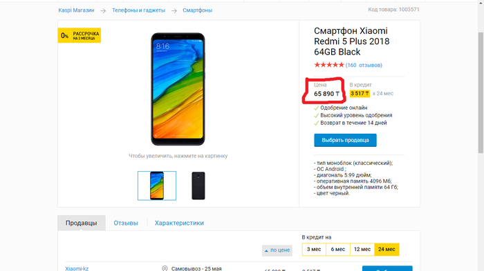 Вы скажете, а причем тут собственно "Kaspi Bank", ведь это право самого магазина "Sulpak" ставить такую цену. А при том что это сговор. Хотя-бы просто потому что на всю другую продукцию, при переходе высвечивается изначально минимальная цена. Пример смартфон Сяоми не участвующий в акции.