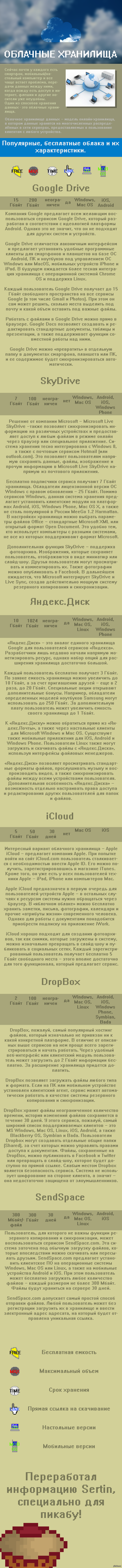 8 Sertin 12 лет назад Облачка Облачные хранилища Показать полностью 1 [моё] Облачное хранилище Cloud Длиннопост
