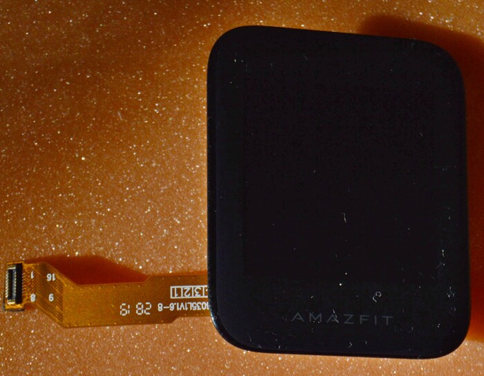2) Дисплей Huami Amazfit Bip A1608 маркировка на матрице DS00198P, на таче #136035L1V1.1 Номер на шлейфе 136035L1V1.6-8. После года использования туда таки попала вода. Был залит сам дисплей, что привело к отказу тача. И немного жидкости попало на вибромотор.