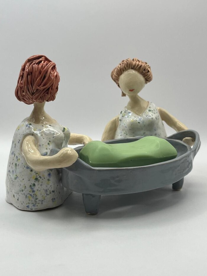 Продолжаю развивать идеи утилитарной керамики. На этот раз - набор керамических девочек для ванной комнаты. Каждая из них не просто украшает собой пространство, но и выполняет определенную роль: