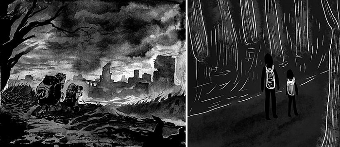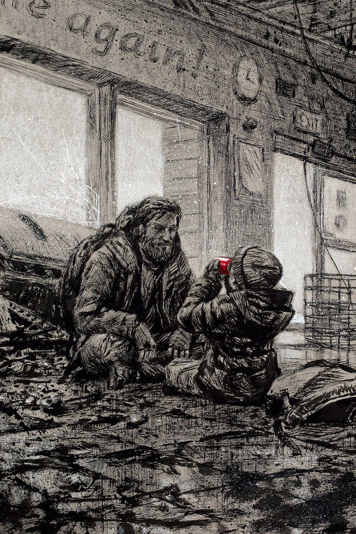 Лучше всего Кормаку Маккарти удалась атмосфера. Она очень мрачная, беспросветная, гнетущая. Это именно тот апокалипсис, который и означает конец человечества, без мутантов, перестрелок с мародерами и радиоактивных выбросов. Просто мир стремительно деградирует и увядает, разлагается, как от неизлечимой инфекции. И спасения нет. Выжившие это прекрасно понимают, что не может не сказаться на их мышлении. Отец по утрам каждый раз проверяет, дышит ли его Сын. Каждый новый день ничем не лучше предыдущего. Бесконечная серость кругом и стремление выжить, правда, непонятно для чего.