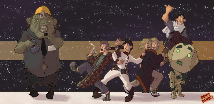 История начинается с конца света. А что такое конец света для среднестатистического британца того времени? Например, потеря дома, который помешал строительству нового сверхскоростного шоссе, о чем, естественно, никто не позаботился известить скромного владельца недвижимости. Именно такая неприятность приключилась с Артуром Дентом. Главный герой – ничем не примечательный молодой британец, отличающийся разве что феноменальной стрессоустойчивостью (она не раз ещё поможет ему в дальнейшем). Адамс намеренно усугубляет ситуацию, доводя бытовой абсурд до полного гротеска: под угрозой выселения оказывается не только Дент, но и все обитатели Земли, по удивительному стечению обстоятельств тоже стоящей на пути галактического прогресса и подлежащей сносу для прокладки гиперпространственного экспресс-тоннеля. И все бы ничего, но с запозданием приходит сообщение, что сносить ничего не нужно, т.к. изобретён новый, более совершенный, способ перемещения. Артур Дент – весьма нетипичный герой, мечтающий о нормальности в мире, где нормальность – абсурд.