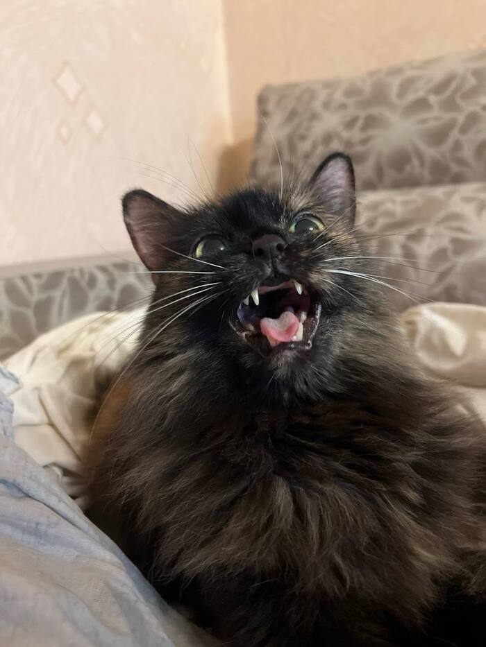 Старшая кошка сказала, что оторвёт нам руки, а козявке голову. И требовала выпустить её на серьёзный разговор. Малявка корчила рожи под дверью, предлагая оторвать захватчику хвост, как трофей. У нас с мамой дёргались все четыре глаза в унисон.