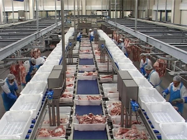 Всё начинается с линии убойного цеха. Бойцы у нас работали с 11 часов утра и до победного. В обычный день было примерно 300-400 голов скота и 600-800 свиней. На этой линии формируются полутуши и субпродукты. Полутуши на роликах едут в морозильник и там ждут своего часа. Каждая полутуша проходит контроль качества. За этим следят.