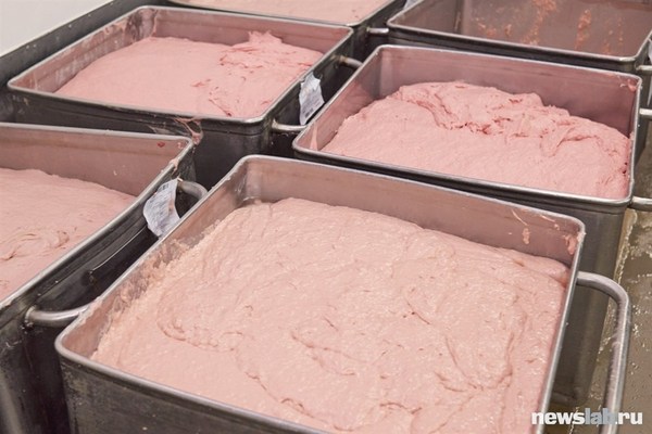 С мясорубок мясо выгружается в чистые китайки и отправляется в камеру созревания, которая находится непосредственно в цеху. К слову, в цеху всегда влажно и мокро, потому что вода используется везде и всюду. Именно из-за этого все рабочие носят резиновые сапоги (к посту про тазик упавший в куттер из-за того, что рабочий захотел завязать шнурки, ага). Раз много воды - значит нужды отводы. Отводы канализации уходят прямо в пол, казалось бы, рай для крыс, но каждый отвод закрыт трапом на болтах с мелкими дырками для воды. В камерах стоят мощные вентиляторы, поэтому проникновение крыс через вентиляцию тоже исключено.