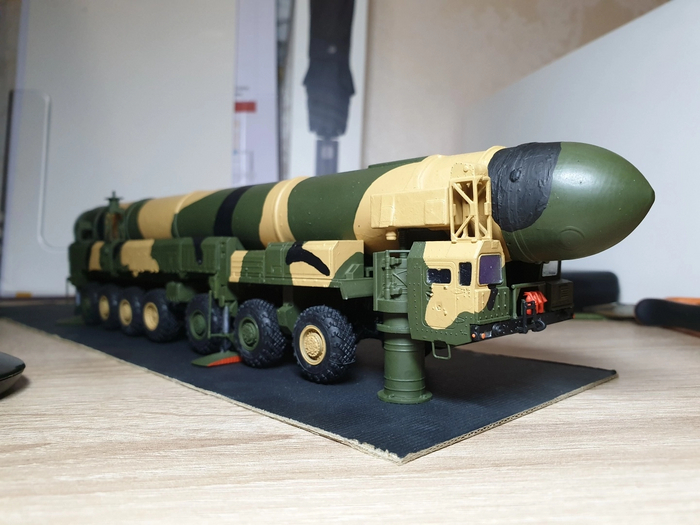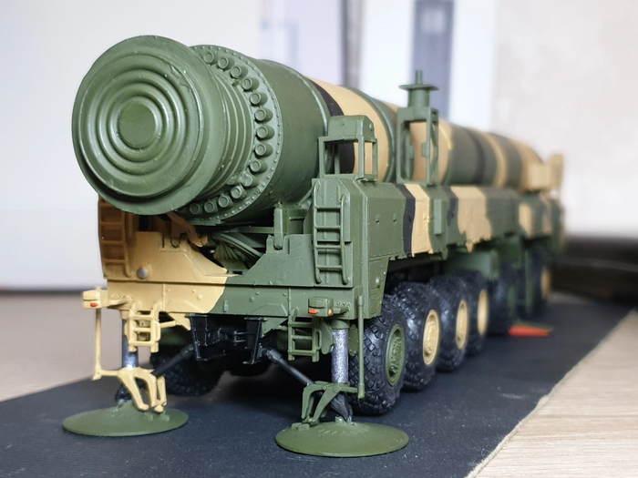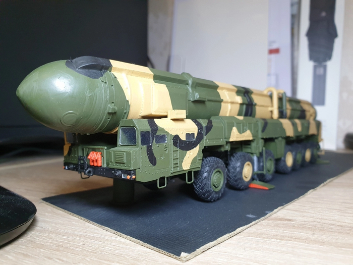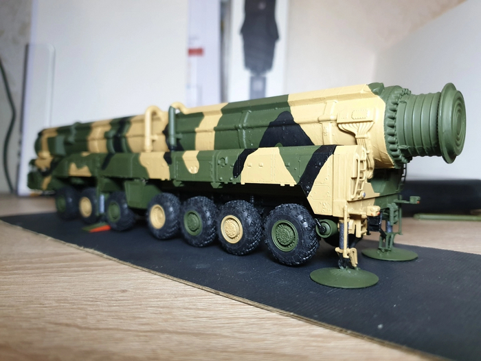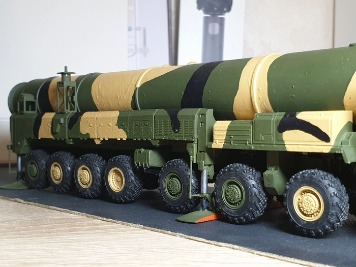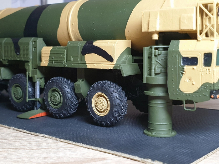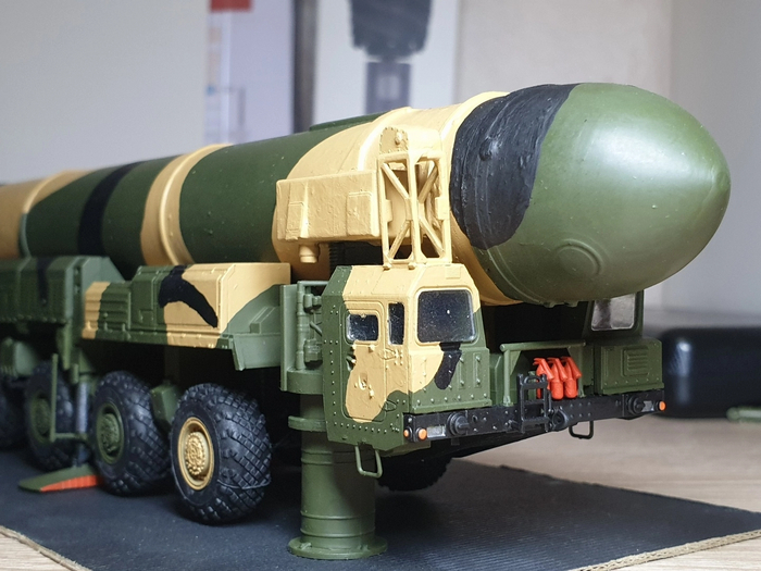 На сборку ушло 3 дня с покраской и просушкой (рама с колесами и подвеской/кабина и оборудование/корпус ракеты с механизмом подъема)