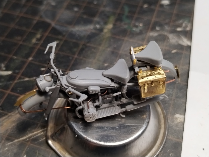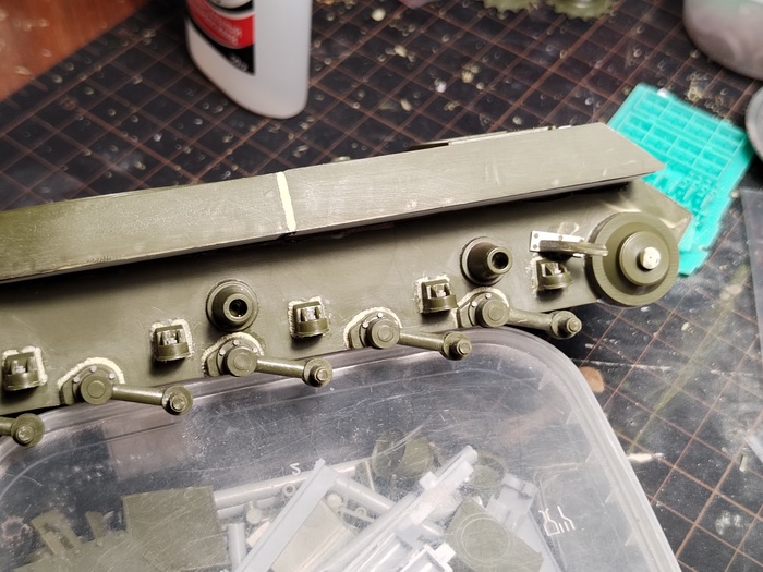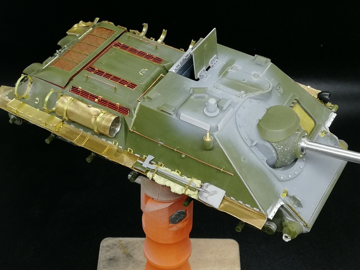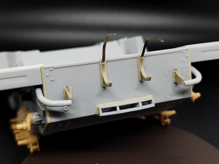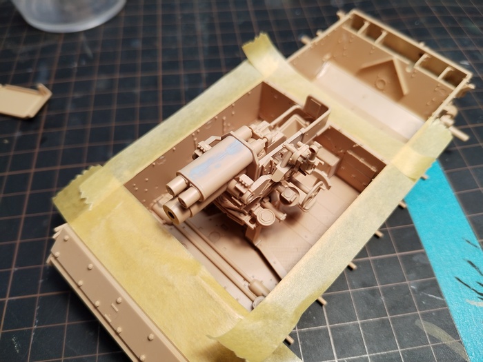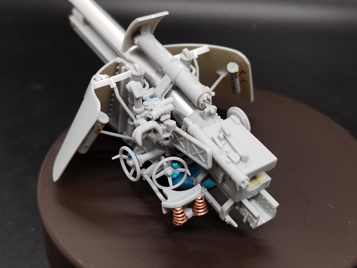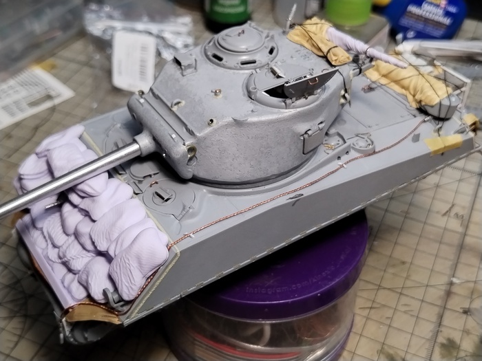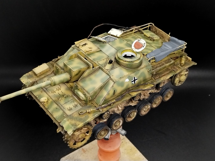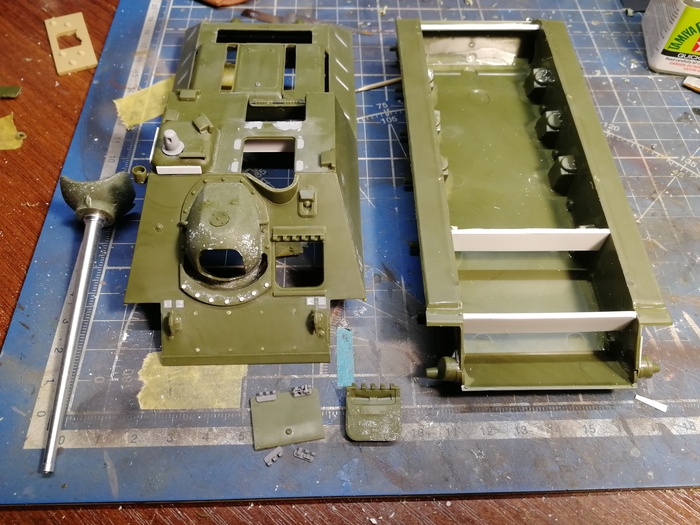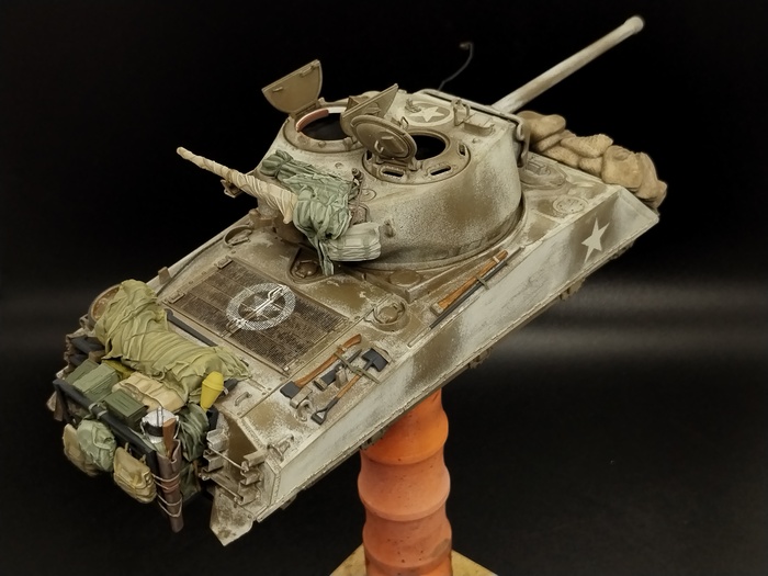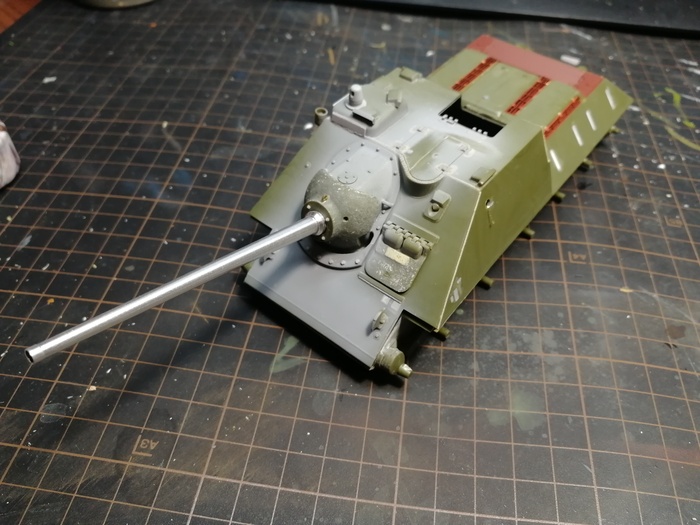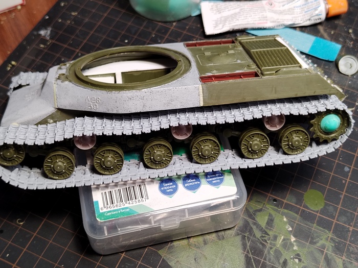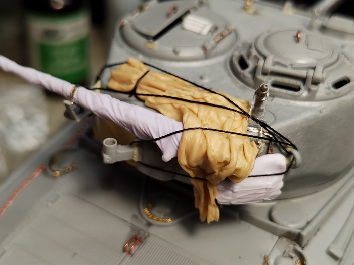 Из рекламного ПВХ слепил подставку 25х25см, были опасения, что ствол будет немного торчать, но они по диагонали все легко помещалось в габариты. Прикинул фигурки от Stalingrad из запасников, размещение в целом устроило, но правда нужно было бы развернуть все на этапе примерки, так как фигурка изначально сделана на правый борт, но я об этом не подумал.