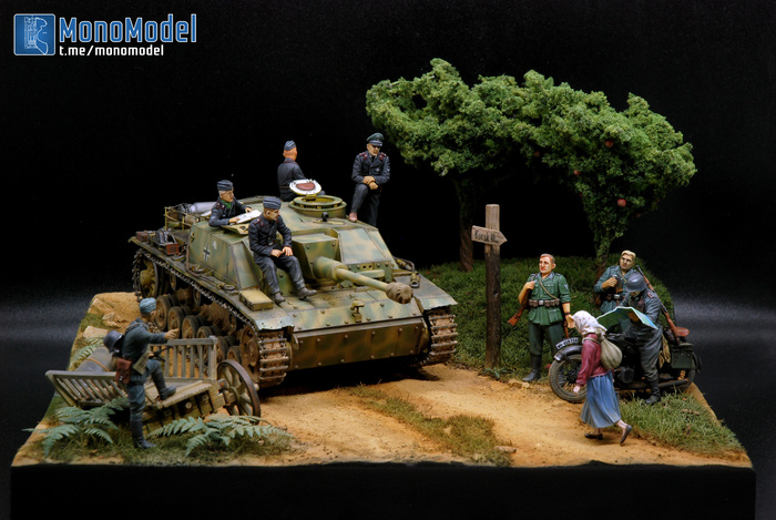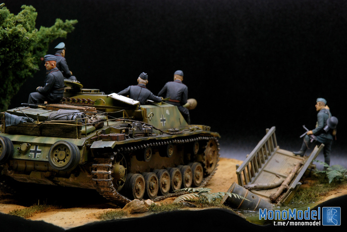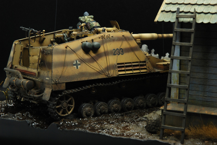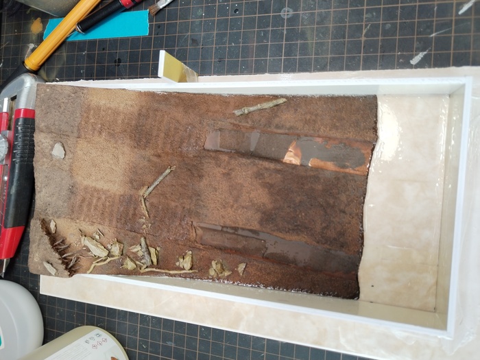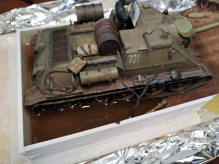 Дальше взял немного жидкостей для имитации грязи от Ammo Mig и начал пробовать сделать мрачно и грязно. Эксперименты, переделки, и снова пробы. Вроде результат меня удовлетворил, на окончательном этапе сделал лужи из эпоксидной смолы и отправил диораму на фотографирование.