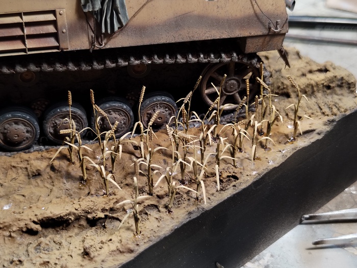 Давно лежал наборчик травленной пшенички от Miniwarpaint, за два вечера с трудом удалось его собрать. На каждом отдельном ростке до 20 поддержек, все надо откусить и зашкурить, а потом все это аккуратно согнуть, работа очень кропотливая и длительная, чтобы засеять всю подставку 25х25см понадобится пару недель... Количество на фото потребовало примерно 8 часов работы, и это всего 5х6см, но результат безусловно зрелищный.