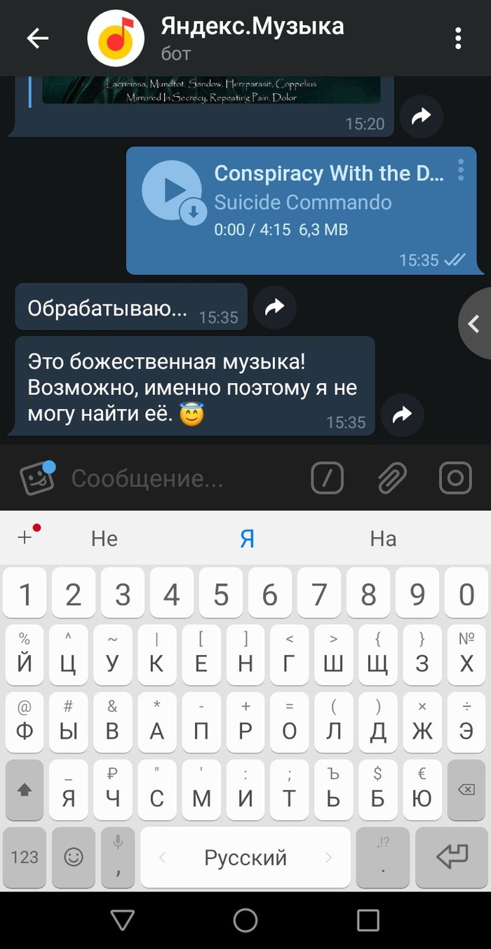 Но добил меня и отправил писать этот пост милейший бот для телеги @YaMelodyBot. Я просто пересылаю трек (или 10/100/1000 разом) в диалог с ботом, и при наличии он отвечает ссылками в яндексе. Функционал элементарный, но мне экономит много движений🤪
