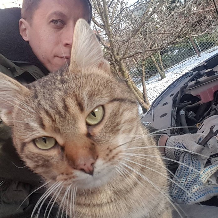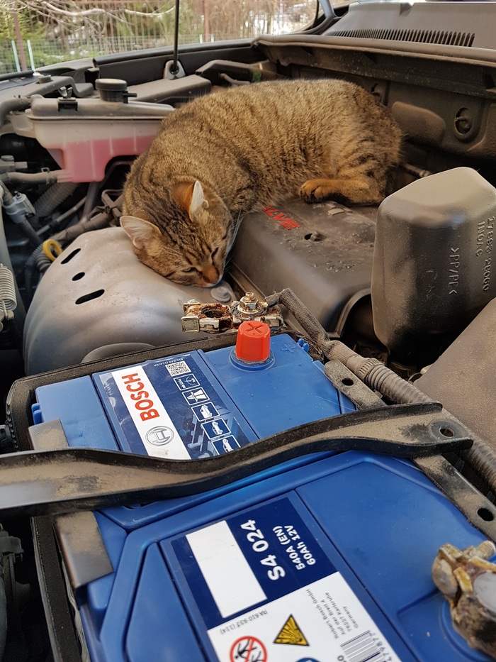 Купил новый, открыл капот. Сразу нарисовался хвостато-мохнатый помощник.