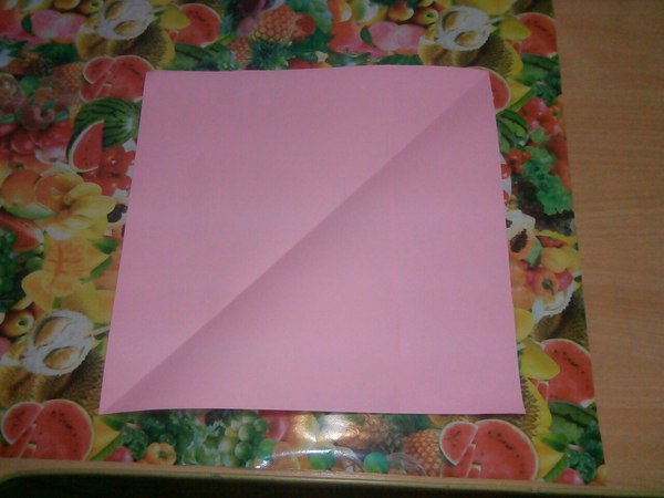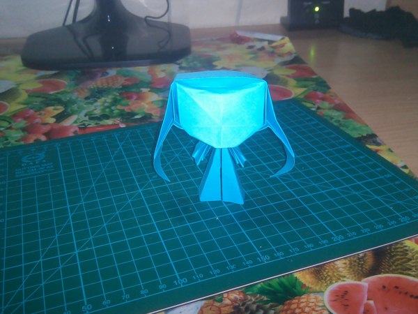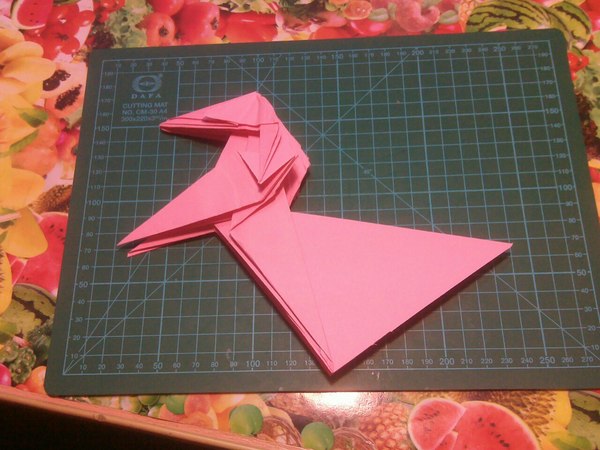Собственно квадратный лист бумаги, отрезанный от листика формата А3 (сторона квадрата примерно 30 см). Кстати, этот лист результат склейки двух А4, на фотографии можно разглядеть место склейки. Далее следует процесс сборки (у меня он занял около часа).