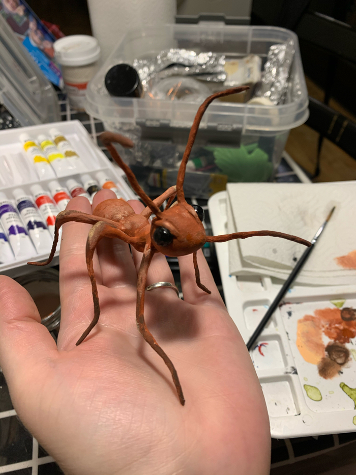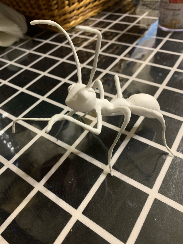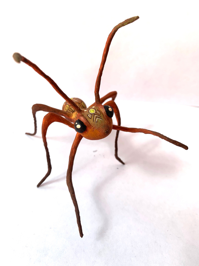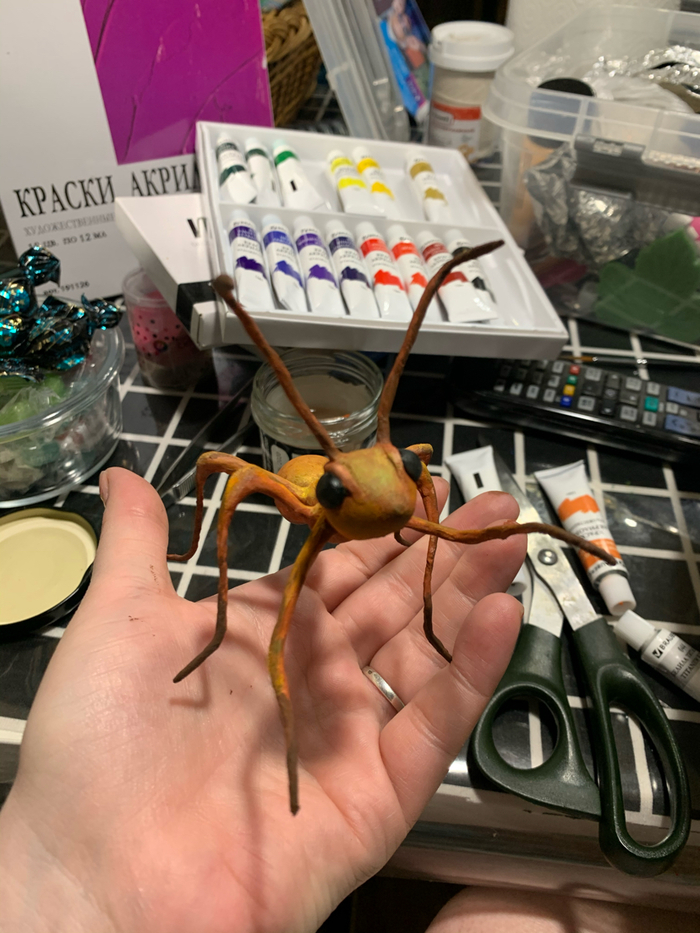 Получаем, что то похожее на насекомое) а дальше работа только акрилом. Меня немного разочаровало как акриловая краска ложиться на бархатную глину(