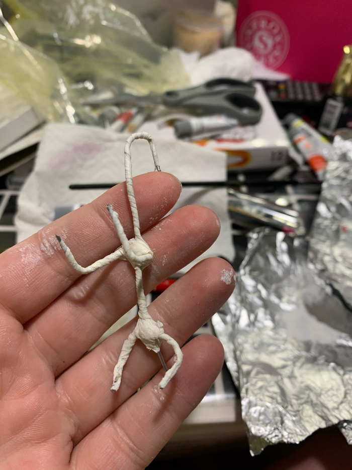 С лапками намучилась), опыта нет. Проволоку обмотала тейп лентой, слегка прошлась глиной. Ну что получилось то получилось) Результат понравился, но хочется довести до идеала.
