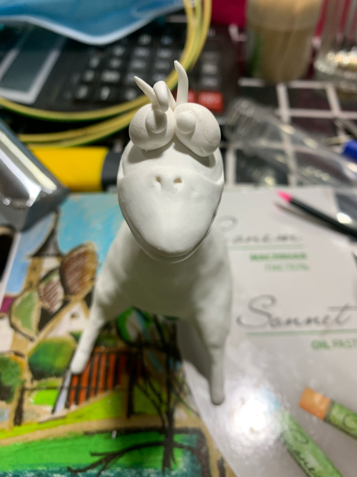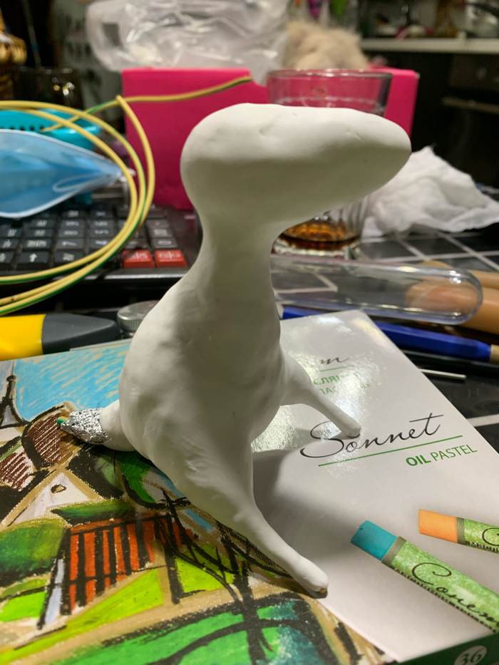 Ну, а дальше я поняла, что это совсем не подставка( да и ручку ему не в Зубы совать) Пришлось ему начать лепить друга)