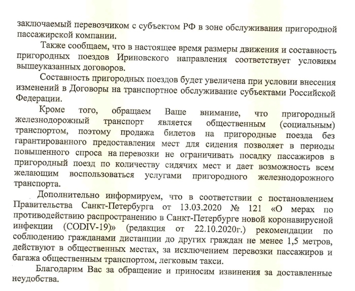 Ещё в период первой волны сделал запрос на увеличение количества вагонов в электричке (живу временно за городом), так как людей ездит очень много и всё битком. Думал это логично и само собой разумеющееся так как на каждом вагоне клеятся стикеры о соблюдении дистанции.