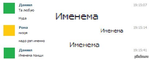 ShimSlady 10 лет назад Именем Убила бы! Только не говорите, что это опять баян Скриншот Переписка ВКонтакте Не мое