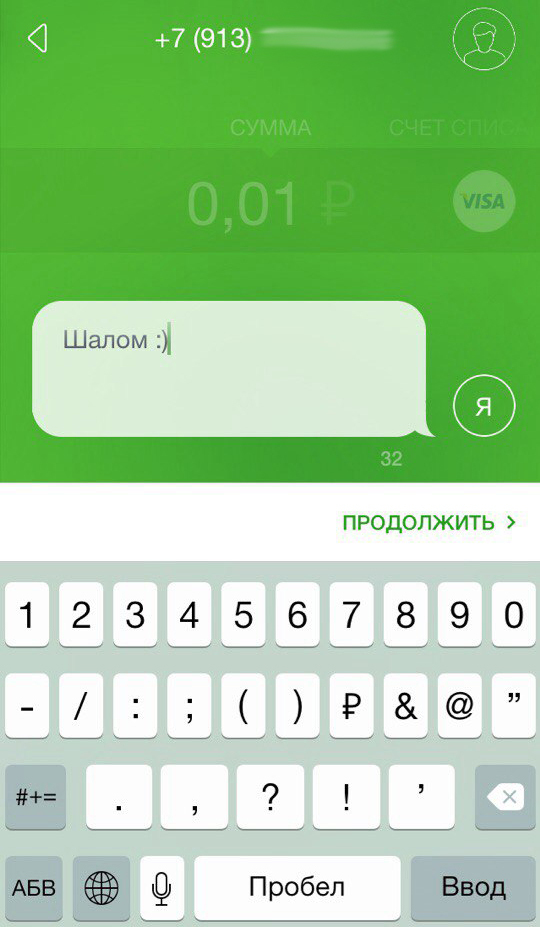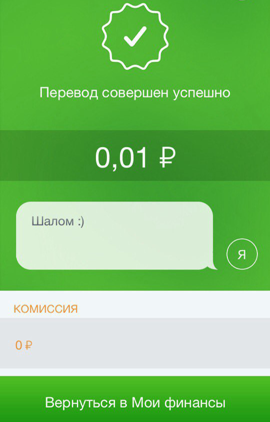 5) Всё! Вы восхитительны! Адресату на телефон приходит смска о переводе с прикрепленным сообщением.
