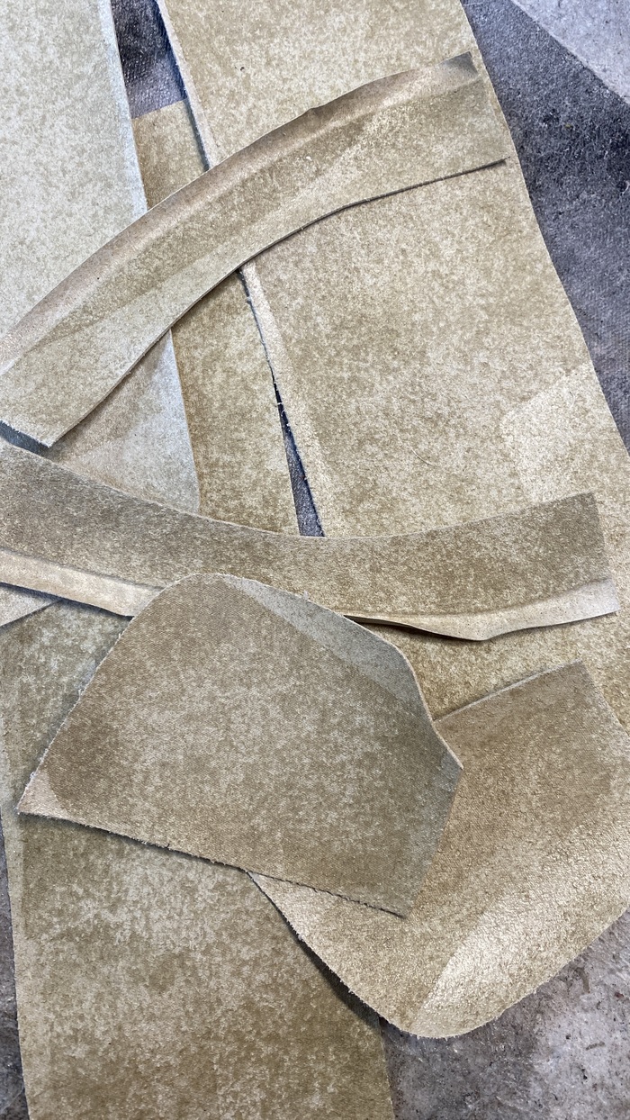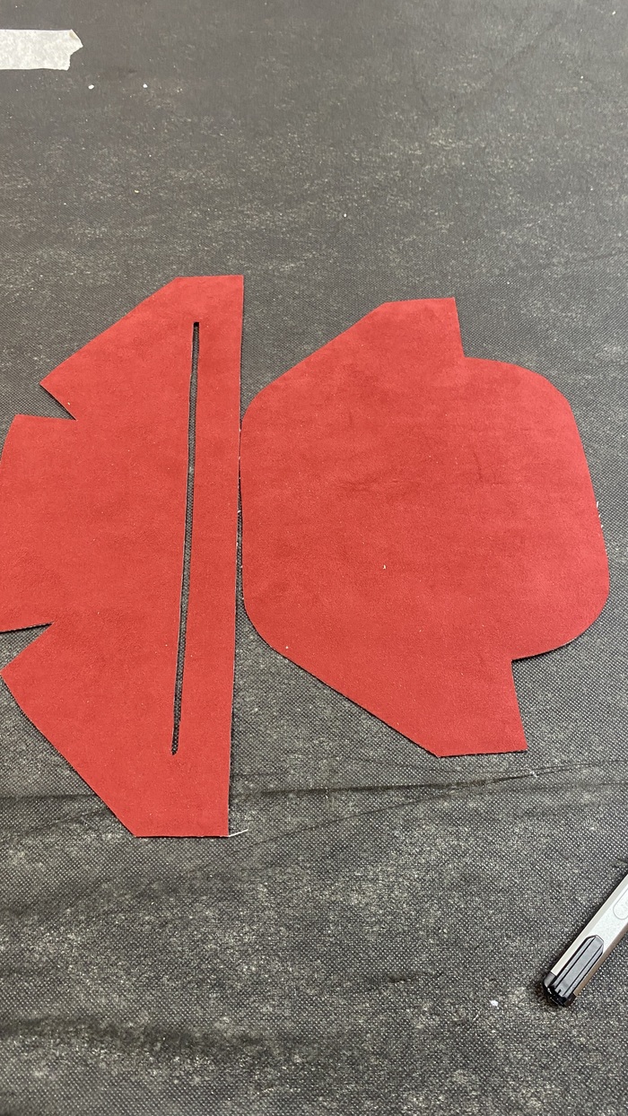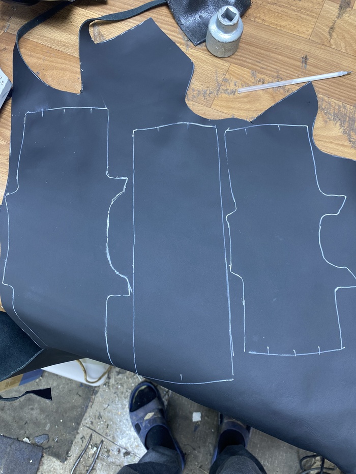 Теперь этот пирог надо подогнать по форме. Чтобы не попасть впросак, беру вырезанный кусок и с учетом его деформаций размечаю примерную линию реза.