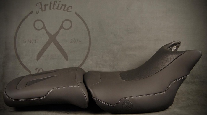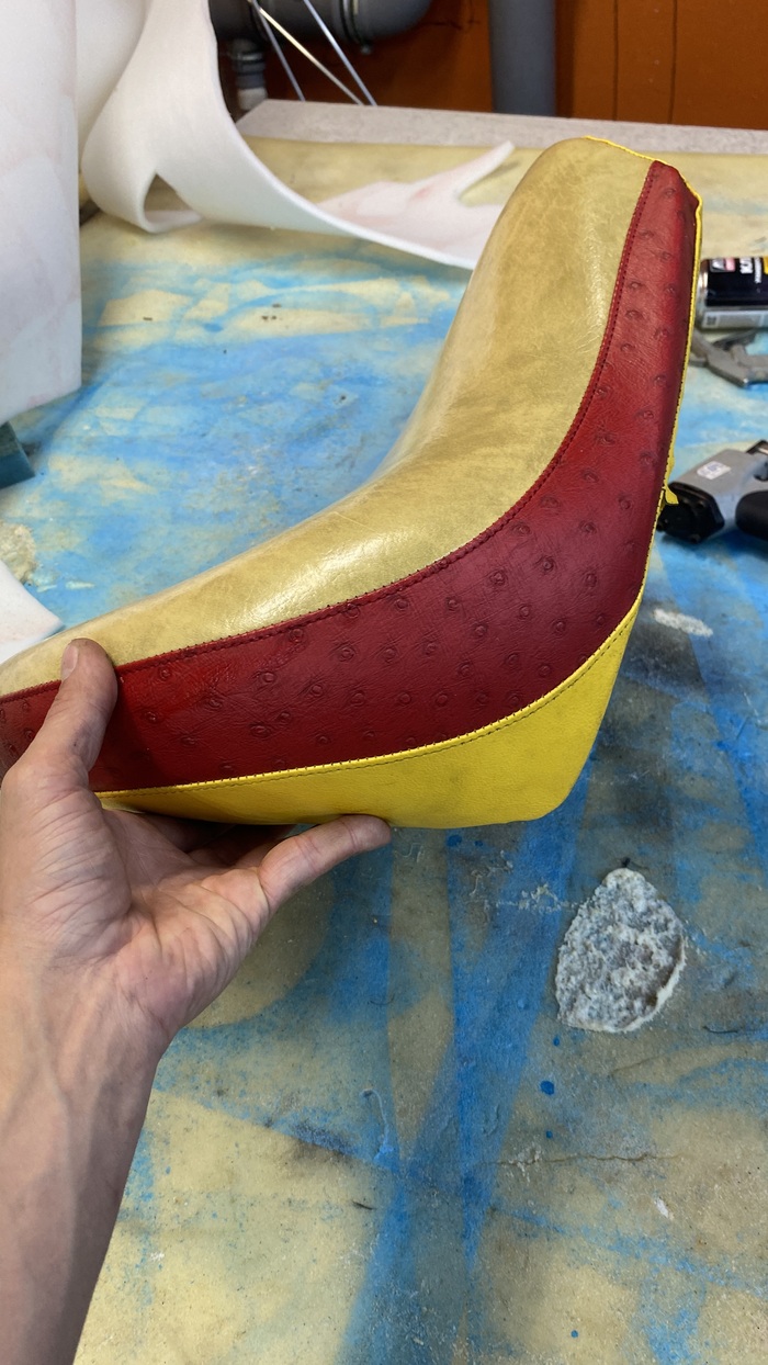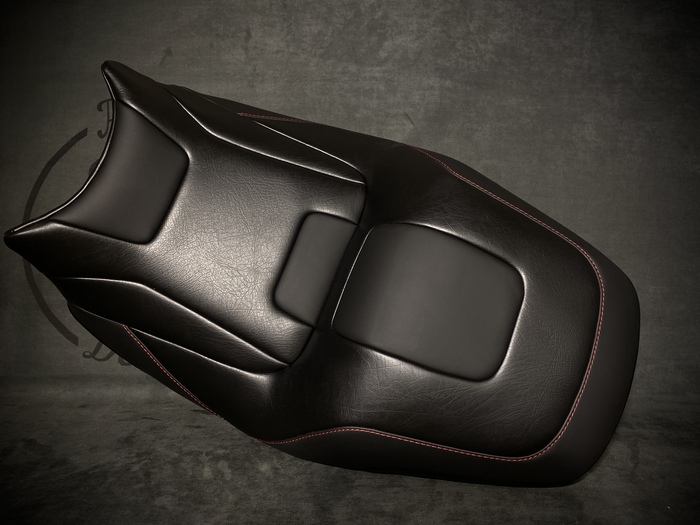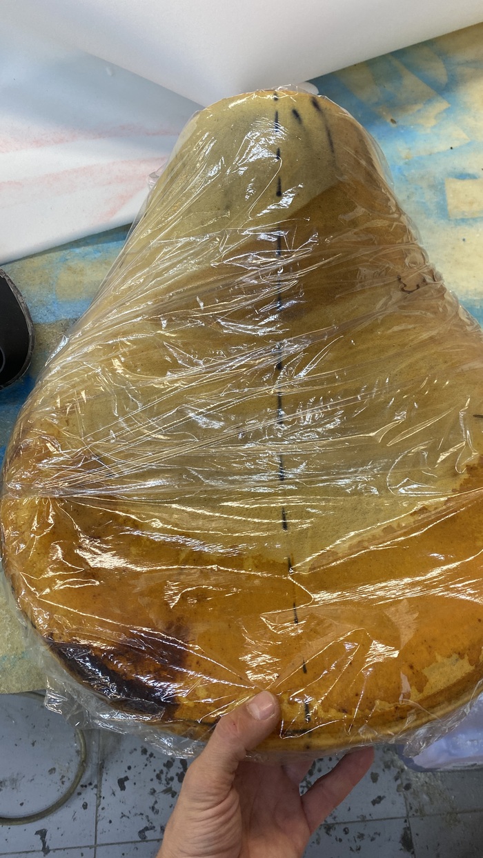 Теперь чистовая шлифовка. Самый ответственный момент. От него будет зависет конечный вид сидушки. Беру пневмоболгарку с наждачным кругом №100 аккуратно шлифую поверхность. Вывожу стыки, убираю все горбы и прочие дефекты. В итоге должна получиться гладкая ровная деталь. Конечно, это не литье в форму, а ручная работа. Тут не сделать безупречно. Но стараться надо. В итоге вот что получилось: