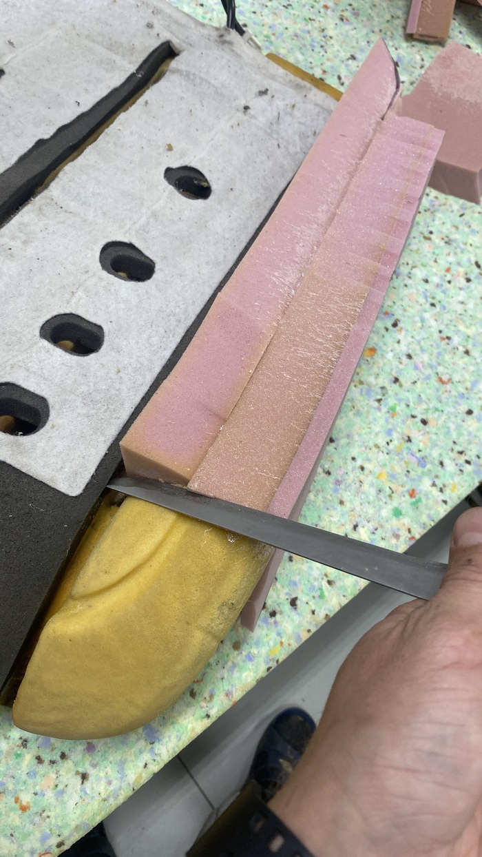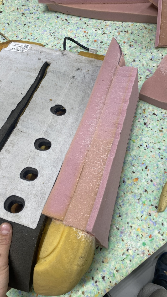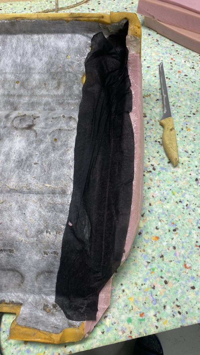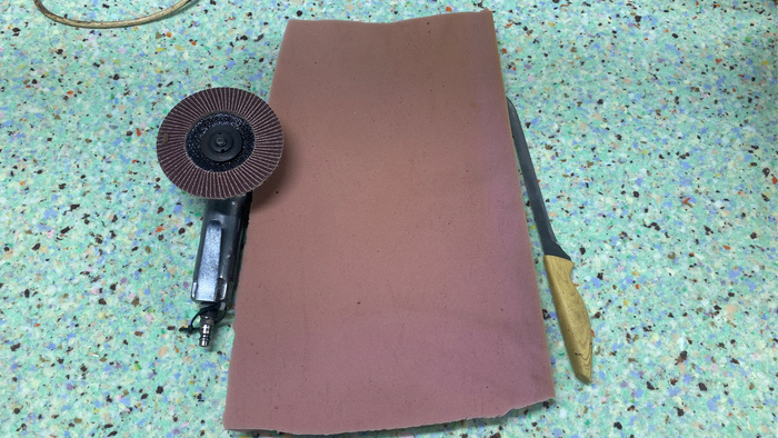 Пневматическая жена болгарина, острый и длинный нож и кусок поролона повышенной жесткости. Я использую HL-4065. Перешел на него недавно и очень доволен. Ранее использовал поролон вторичного вспенивания (на нем как раз все лежит). Но с ним сложнее работать, от него больше грязи и, самое главное, наощупь чувствуется отличие от родного поролона. У меня 3 размера: 10мм, 20мм и 40мм толщины. Хороший набор для всех случаев.