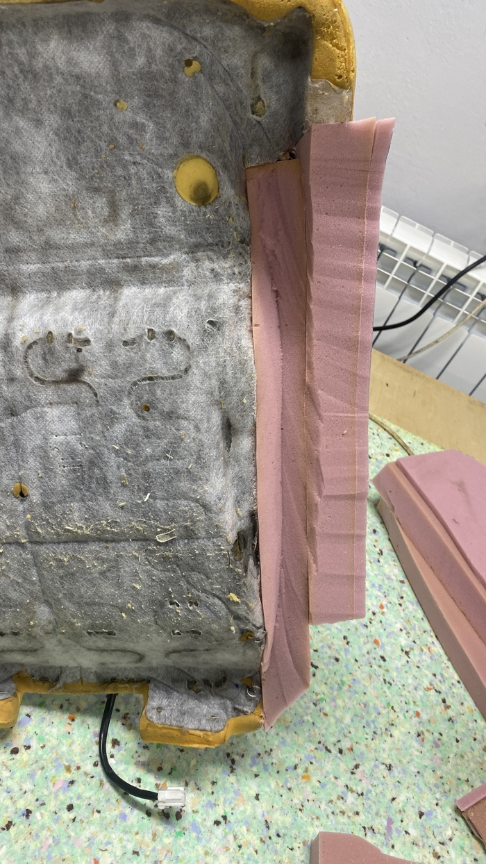 Но и это еще не все. Поскольку делалось все вручную, то есть шанс небольших дефектов. Это не страшно, таковы жизнь. В руках ЧПУ нет. Поэтому оклеиваю поролоном 5мм.