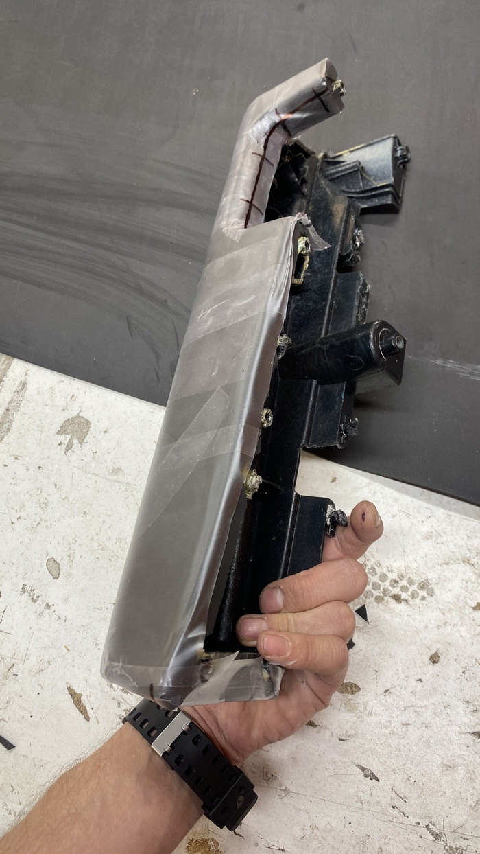 Но ставить еще рано. Надо укрепить новую деталь. Клей хоть и ядреный, но лучше перебздеть. С изнанки наклеиваю спанбонд. Не самы плотный, но и не прозрачный. Средненький.