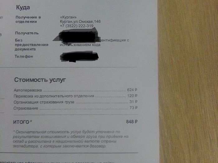 Начал выяснять что к чему, оказывается они ПЭКовцы по прибытии груза на склад посчитали что мои "запчасти бу" должы быть упакованы в ЗТУ защитно транспортную упаковку. У меня же такой хрупкий груз- он может сломаться, помяться, поцарапаться, порваться в конце концов, железяка мать его.