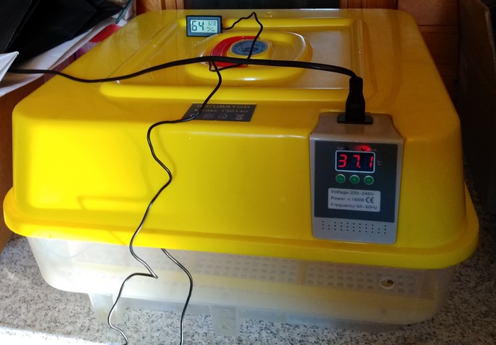 И собственно с этого момента и началось моё "а фигня чё там делать-то" птицеводство. Если температуру инкубатор поддерживает сам, то с влажностью вышла опа. Во время отопительного сезона влажность в доме составляет 20-25%. А в инкубаторе на разных этапах она должна быть от 55 до 85%. И простого залива воды в инкубатор не хватало для поддержания нужной влажности. Танцы с бубном проводила по несколько раз в день, бегала с пульверизатором, включала увлажнитель, воздействовала силой мысли. Но всё равно, если приходилось надолго отлучатся, по приезду влажность падала до 40-45%.